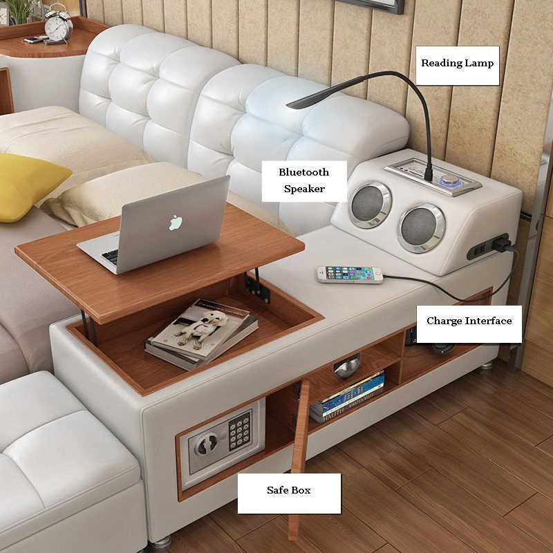 Luxury modern multifunctional genuine leather bed