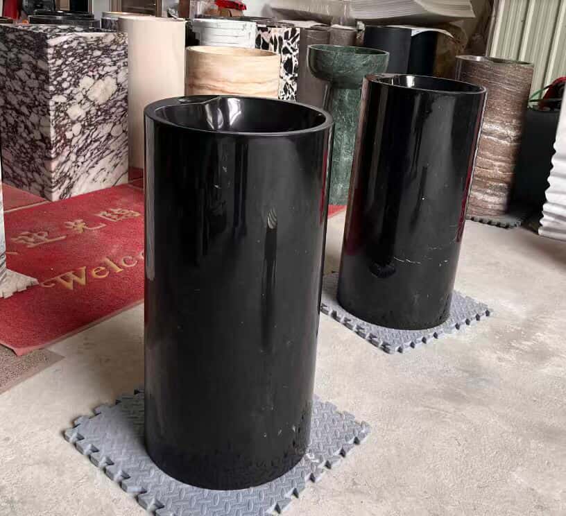 Modern Black Freestanding Pedestal Basin – Minimalist Stone Wash Sink for Bathrooms