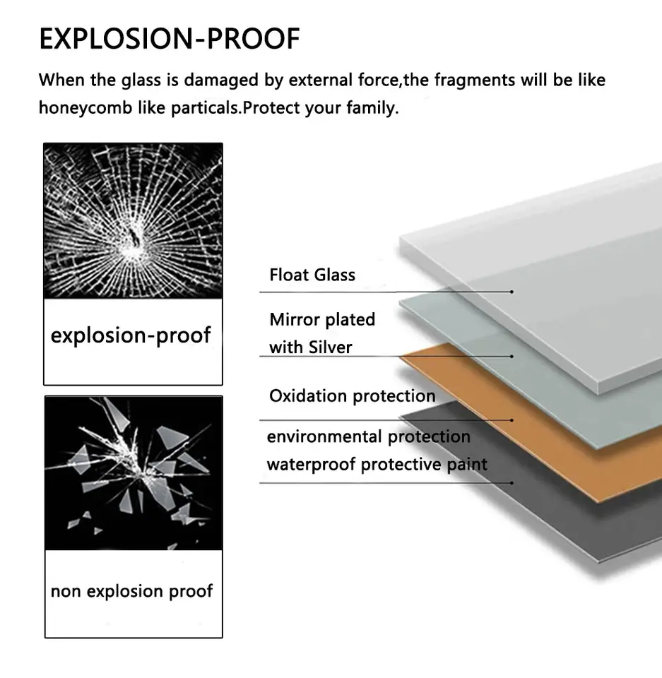 100x60cm HD Mirror Wall Mounted Illuminated Smart Led Mirror Details: Tricolor+ Antifog + time date + High definition Glass
