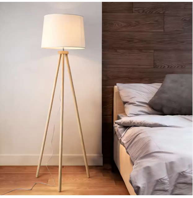 Key Features Modern bedside floor lamp with natural wood finish Fabric shade for gentle, glare-free lighting Multiple color temperature options... Read more