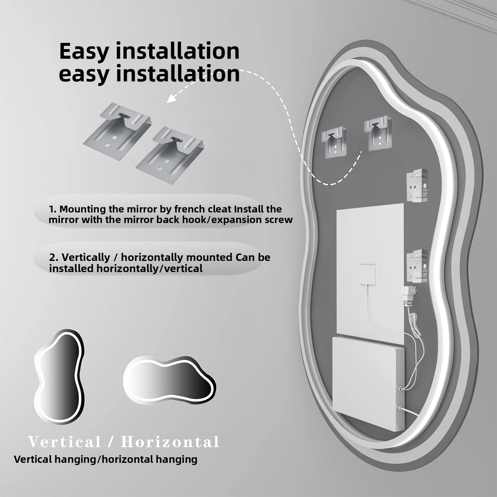 Bring contemporary elegance into your space with this Nordic modern full-length LED bathroom mirror, designed in a unique irregular lake shape. Perfect for bathrooms, bedrooms, dressing areas, or vanity corners, this illuminated mirror combines functionality with artistic style, making it an eye-catching addition to any modern interior.