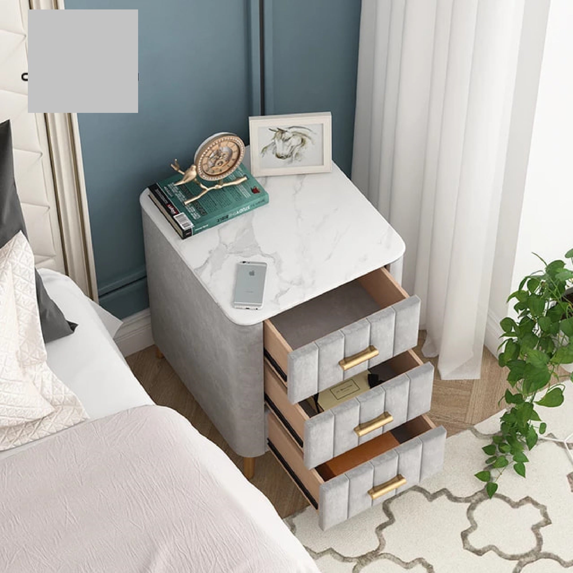 Nordic Side Table Bedside Table Slate Marble Top With Drawer