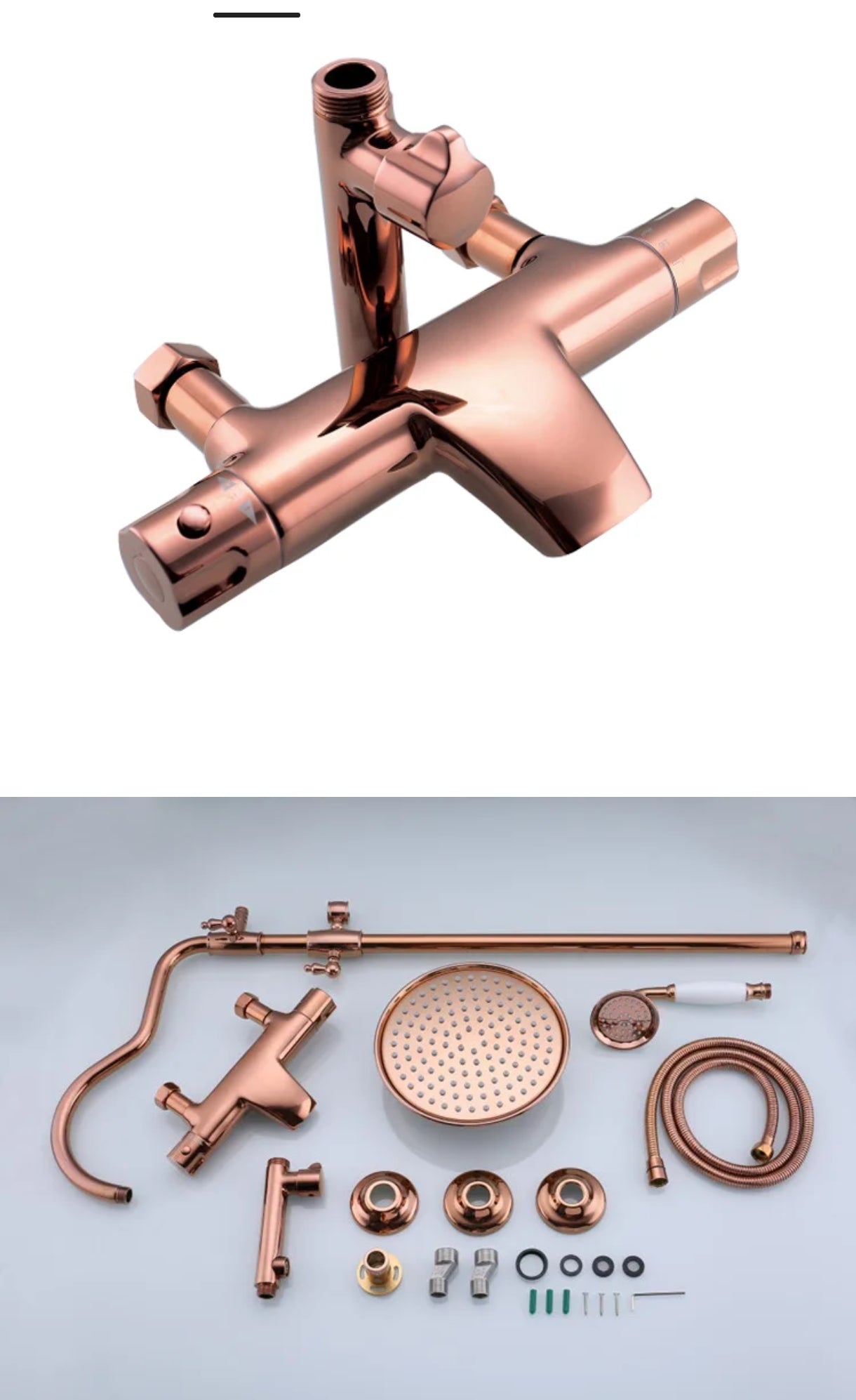 Rosegold Slim Rainfall Shower Hot and Cold Line Brass Copper