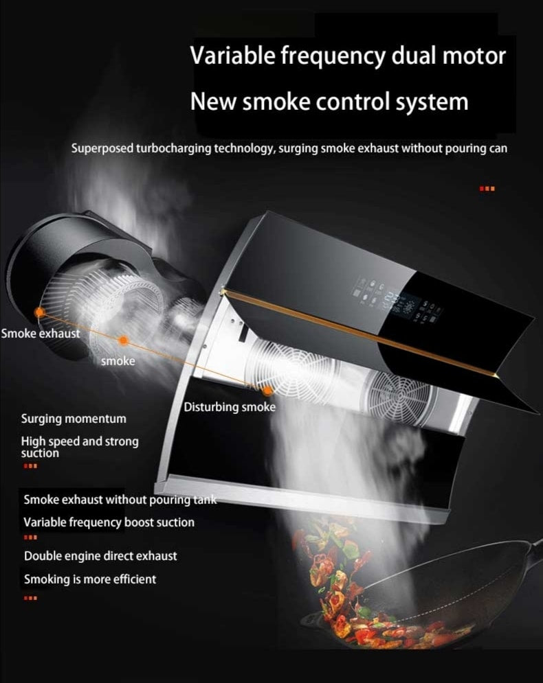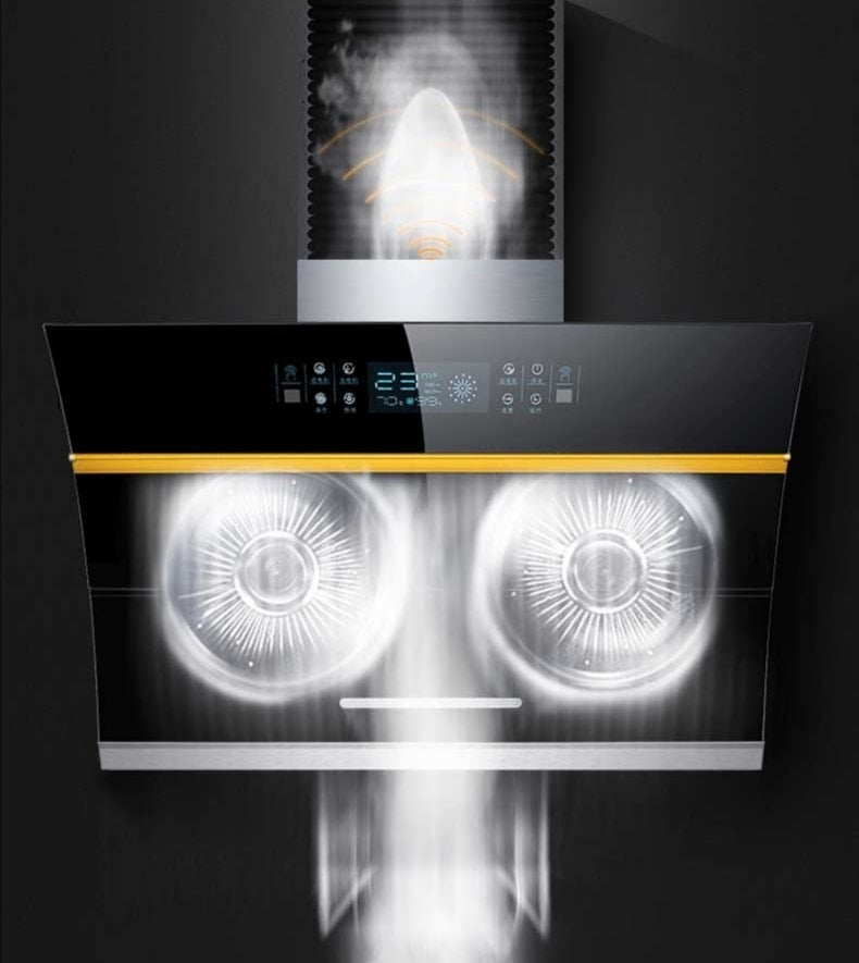 Two Motors Heater Auto Clean Gesture Control Kitchen Exhaust Range Hood Kitchen
