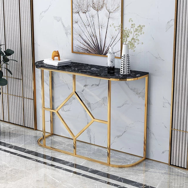 Iron Console Table with Slate Top Marble