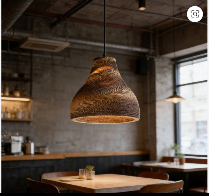 Industrial Wooden Pendant Light – Sculptural Hanging Ceiling Lamp for Café or Dining Room, Warm Rustic Ambient Lighting Fixture