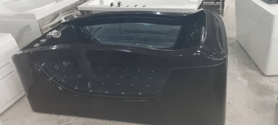 Waterfall Mini Jacuzzi Black Bathtub with Left and Right Waterfall Led Light