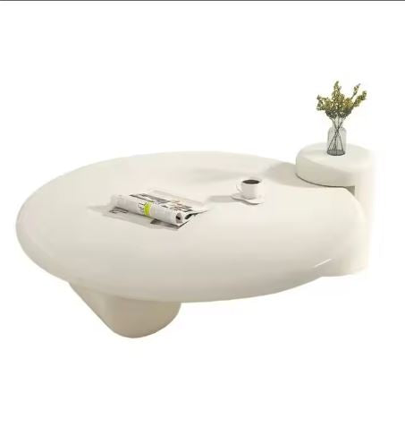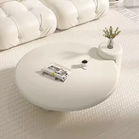 White Minimalist Table Living Room Home Cream Small Apartment Round Modern Simple Design Geometric Tea Table