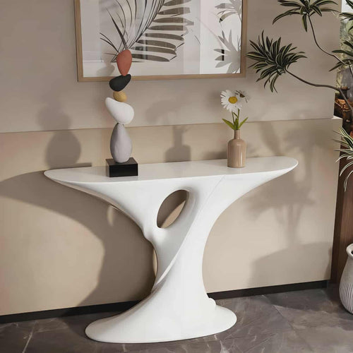 Contemporary Art Fiberglass White Console Table with Curved Organic Design and Gloss Finish