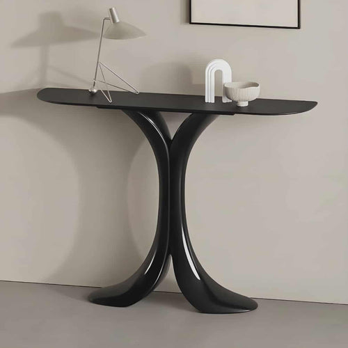 Modern Art Pebble Base Console Table with Black Tempered Glass Top