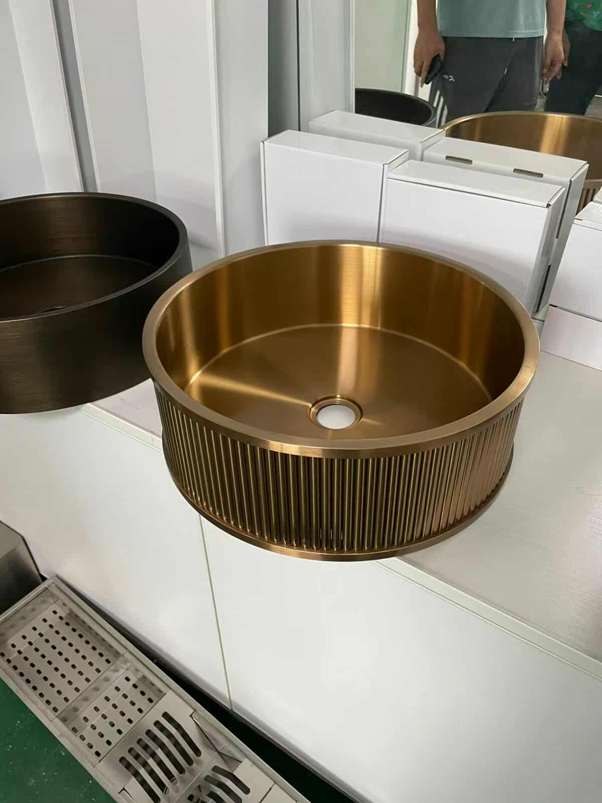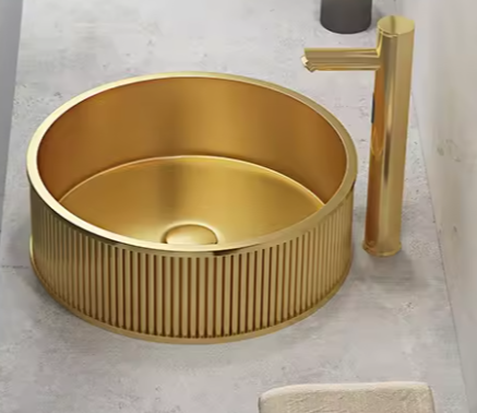 304 Stainless Steel Gold Round with Hand Art Designs Wash Basin