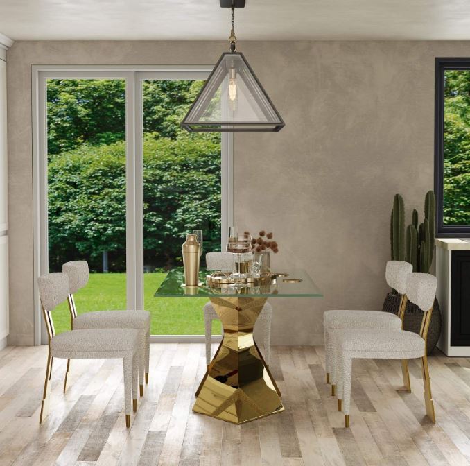 Modern Dining Set Tempered Glass Table Room Furniture Stainless Steel Frame With Velvet Dining Chair for Home Villa Hotel Restaurant Use