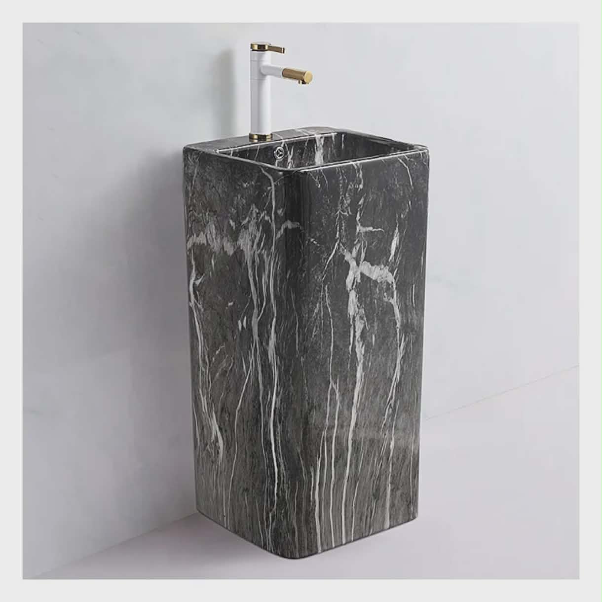 Black Modern Freestanding Marble Style Pedestal Basin | Luxury Stone Bathroom Sink