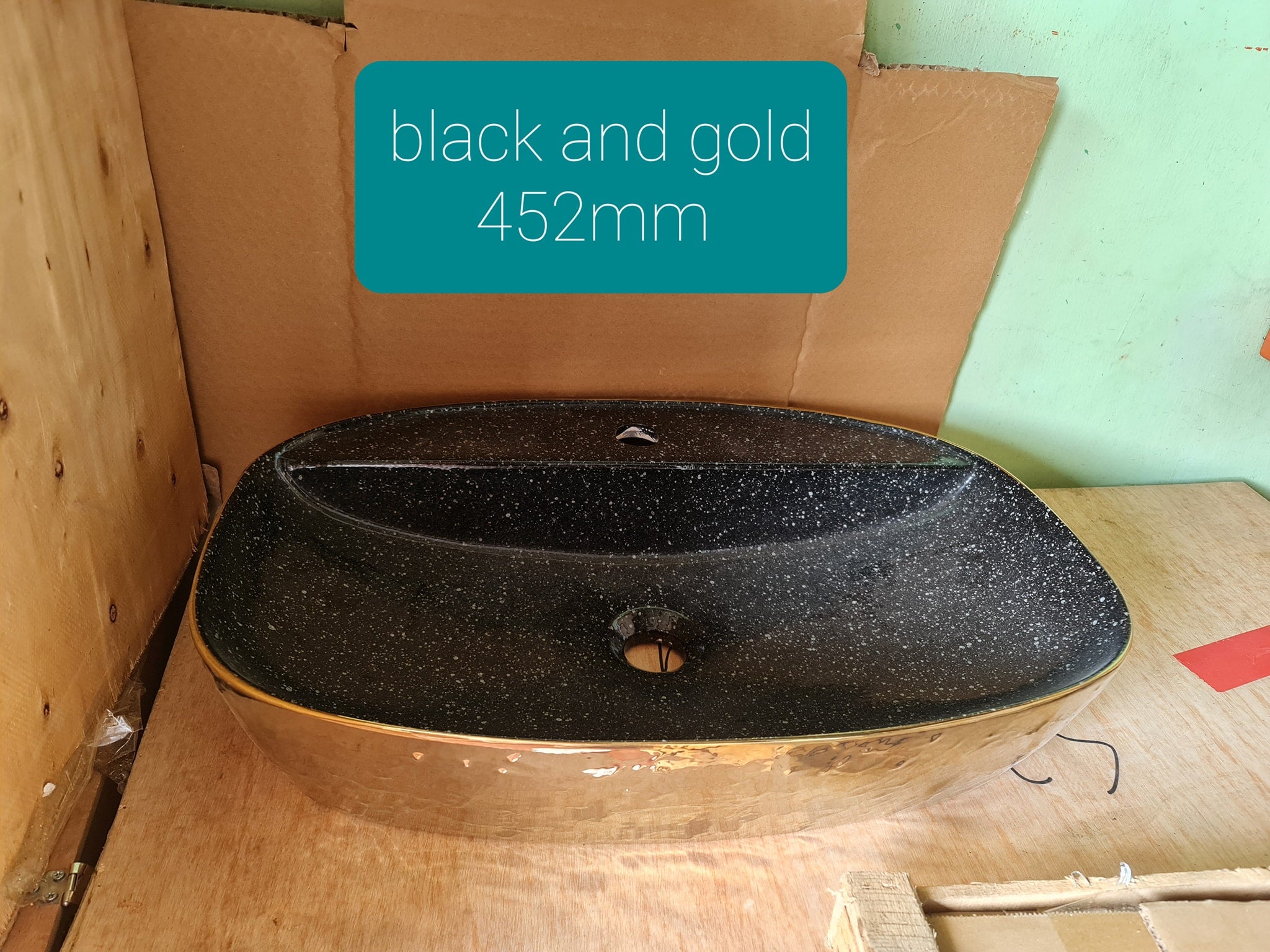 Porcelain Electroplated Sink Tabletop Bathroom Wash Basin Gold Glossy with Inside Black