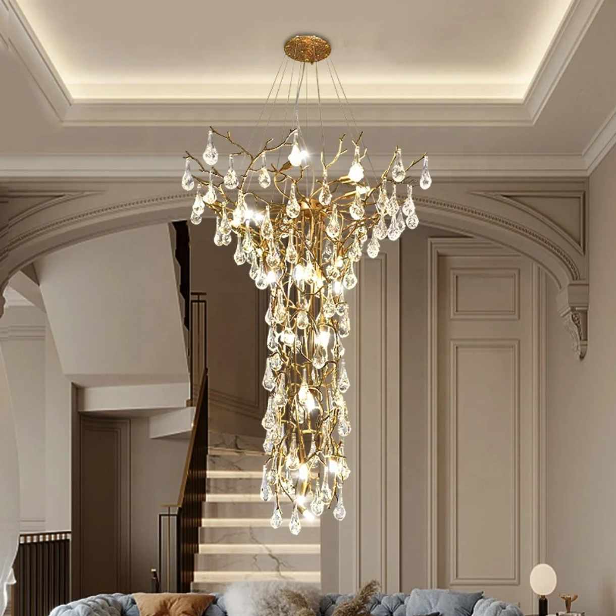 Crystal Branch Cascade A Modern Chandelier with Sparkling Pendants Illuminating Elegance and Natural Charm in a Sophisticated Space