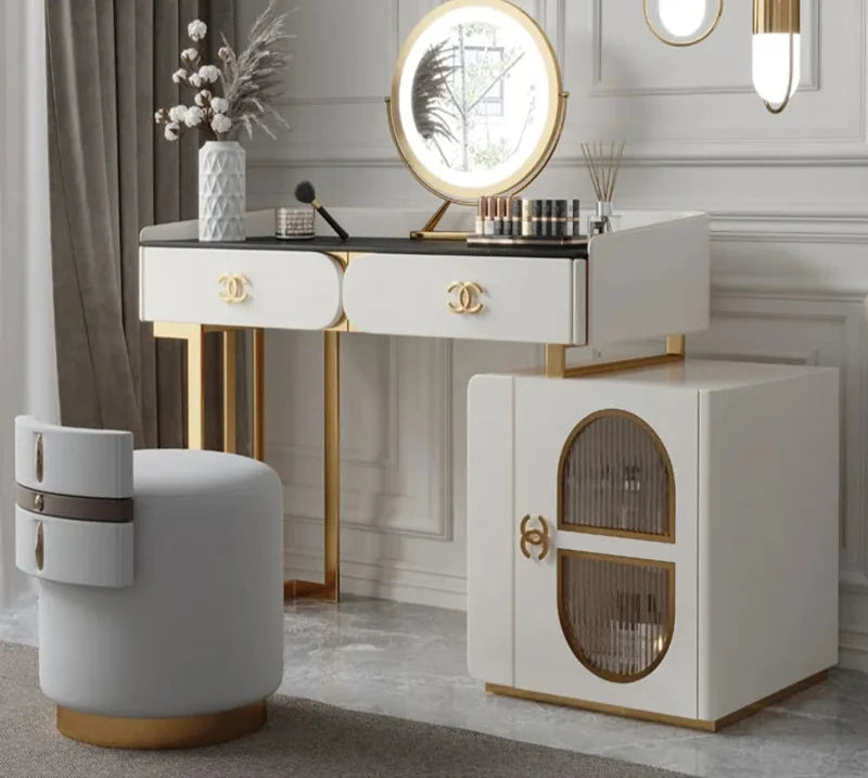 Gold Stainless Steel Mirror Makeup Dresser Dressing Table Modern Style