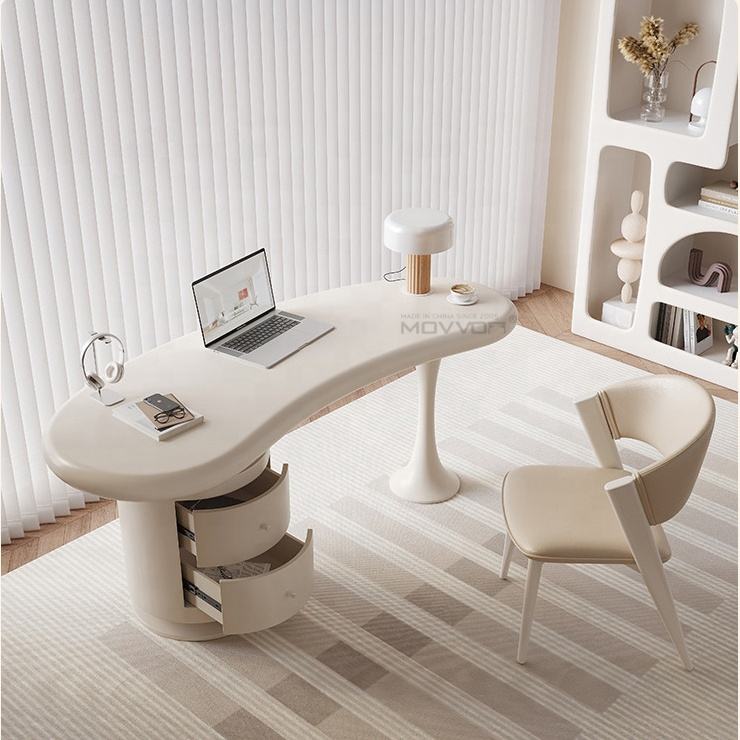 High-Grade Cream Style Solid Wood Desk Small Household French Light Luxury Modern Design with Special-shaped Features