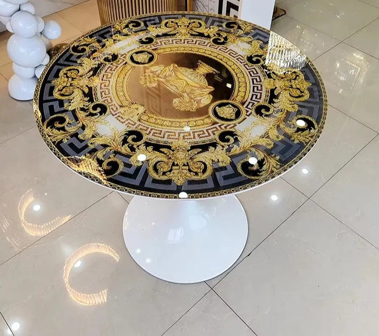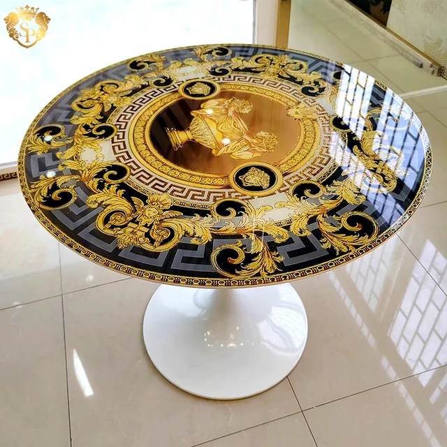 Italian design modern shiny gold round coffee table slate mirror tempered glass top luxury center coffee table