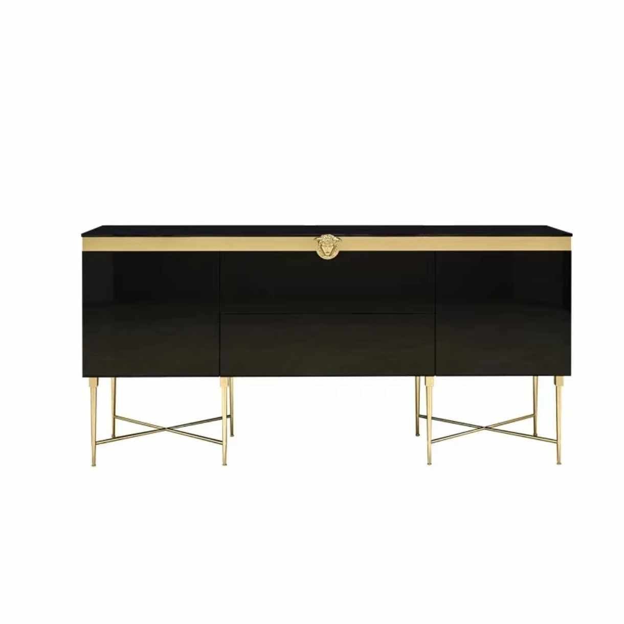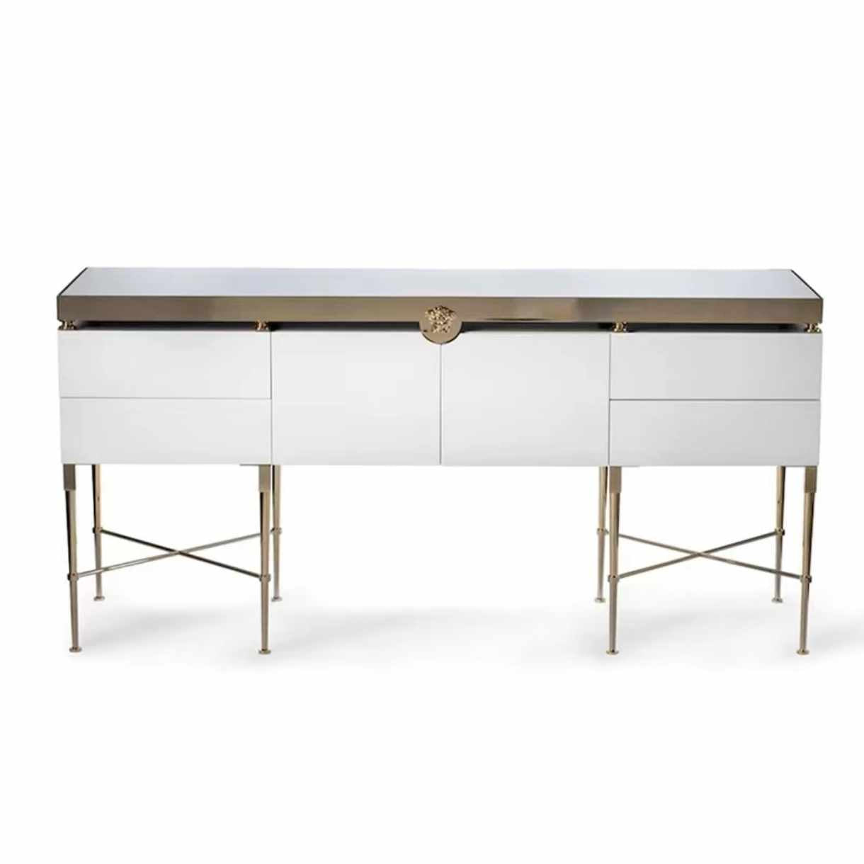 Luxurious Minimalist White Black Rectangular Versace Medusa Console Table with Durable X Legs- Elegant Design for Modern Living Spaces