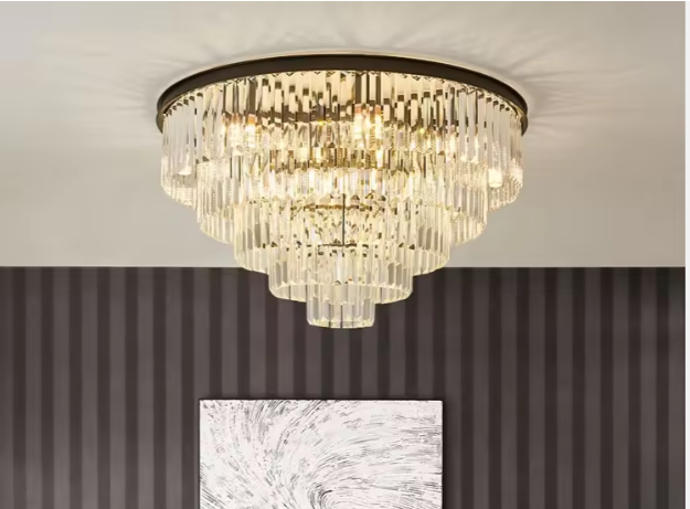 Bring timeless elegance to your home with this Luxury Crystal Gold Flush Mount Ceiling Light, designed to create a warm and sophisticated atmosphere. Its layered crystal design reflects light beautifully, adding luxury and charm to any interior.