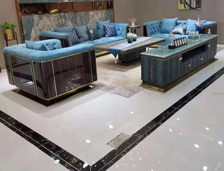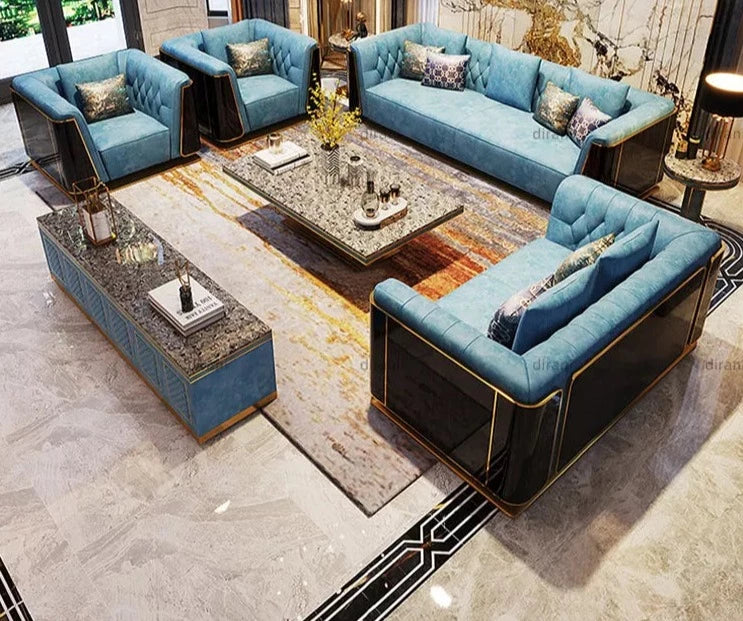 Luxury High Gloss Real Genuine Leather Lacquer Teak Wood Veneer Living Room Sofa Set