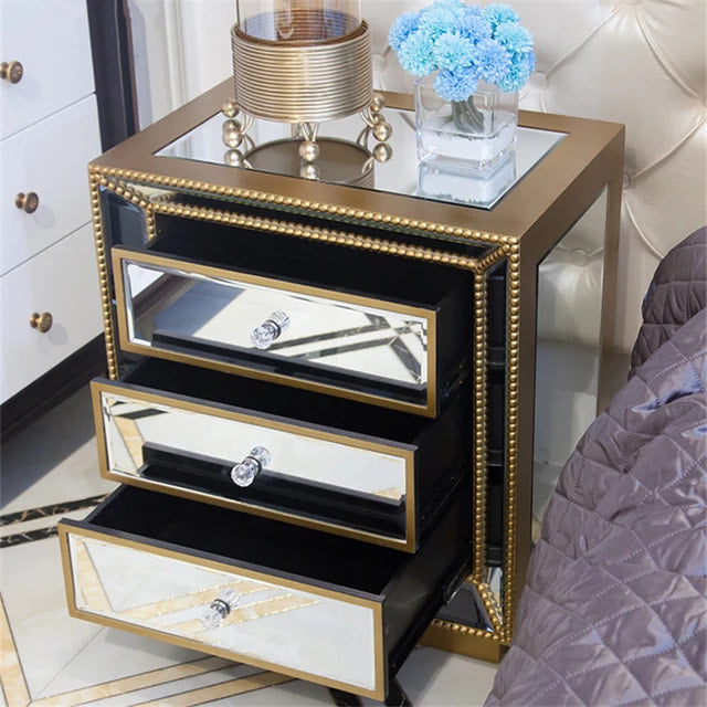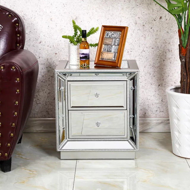 Luxury Mirrored Side Table with Drawer Bedside Table Accent Glass Drawer