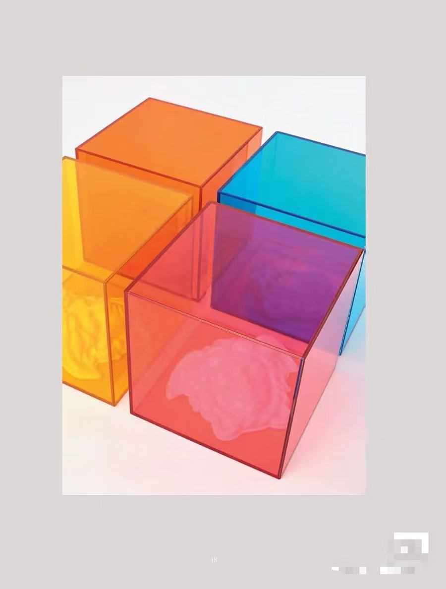 Acrylic Cubes in Vibrant Hues of Orange, Blue, Red, and Yellow, Showcasing Light Refraction and Shadow Play