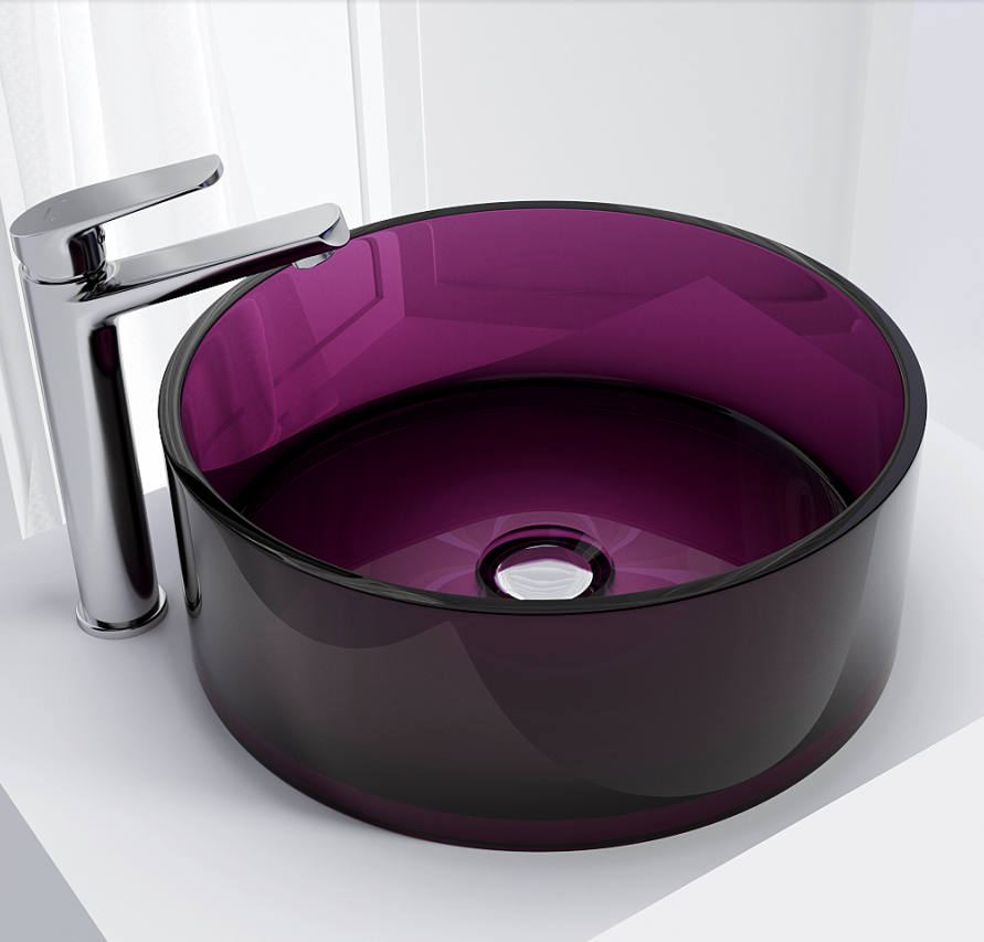 Modern Design Transparent Purple 100% Resin Eco-Friendly Matt/Glossy Finish Hand Wash Basin Counter Top Bathroom Sink 3-Year