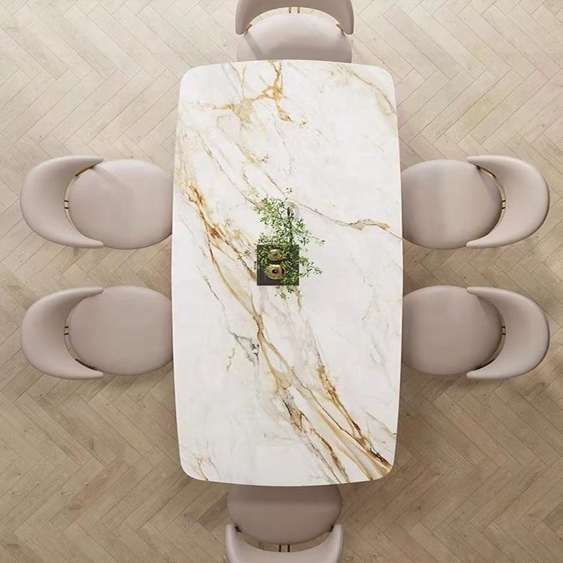 Modern Home Dining Table with Gold Stainless Steel Electroplated Base Slate Marble Top Rectangular Design for Luxury Home Hotel or Apartment Use