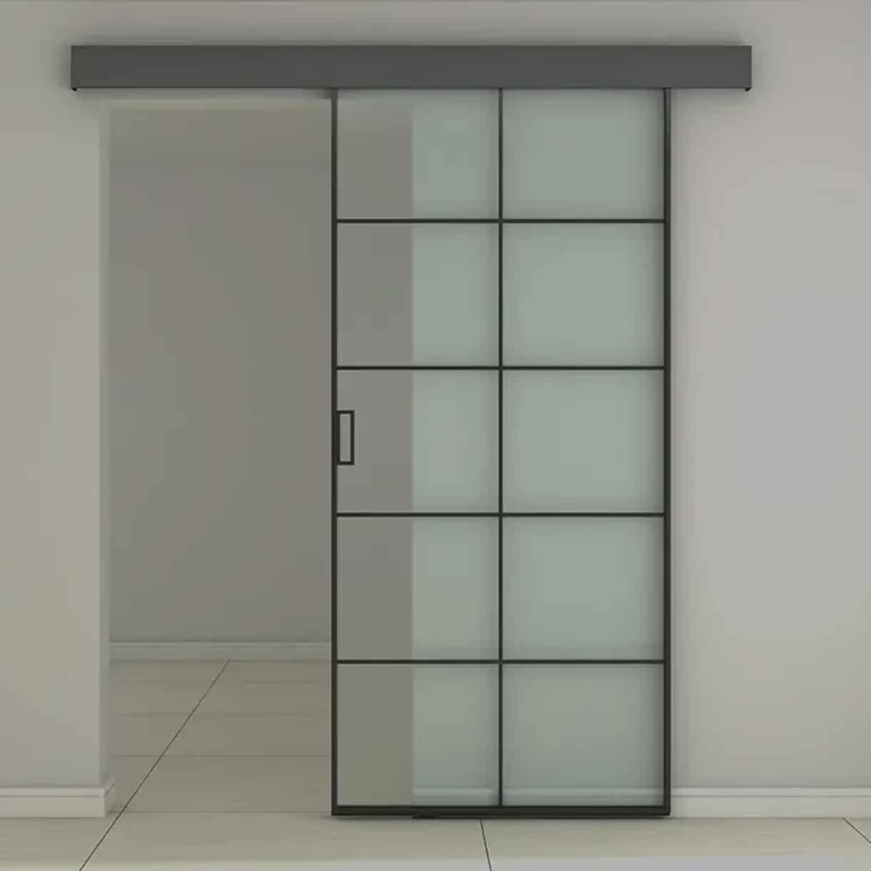 Modern Indoor Glass Pocket Door – Aluminum Track & Steel Frame