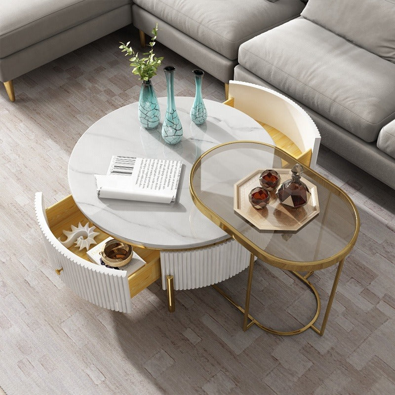 Marble Stainless Steel Contemporary Coffee Table with Side Table Tempered. Glass Top