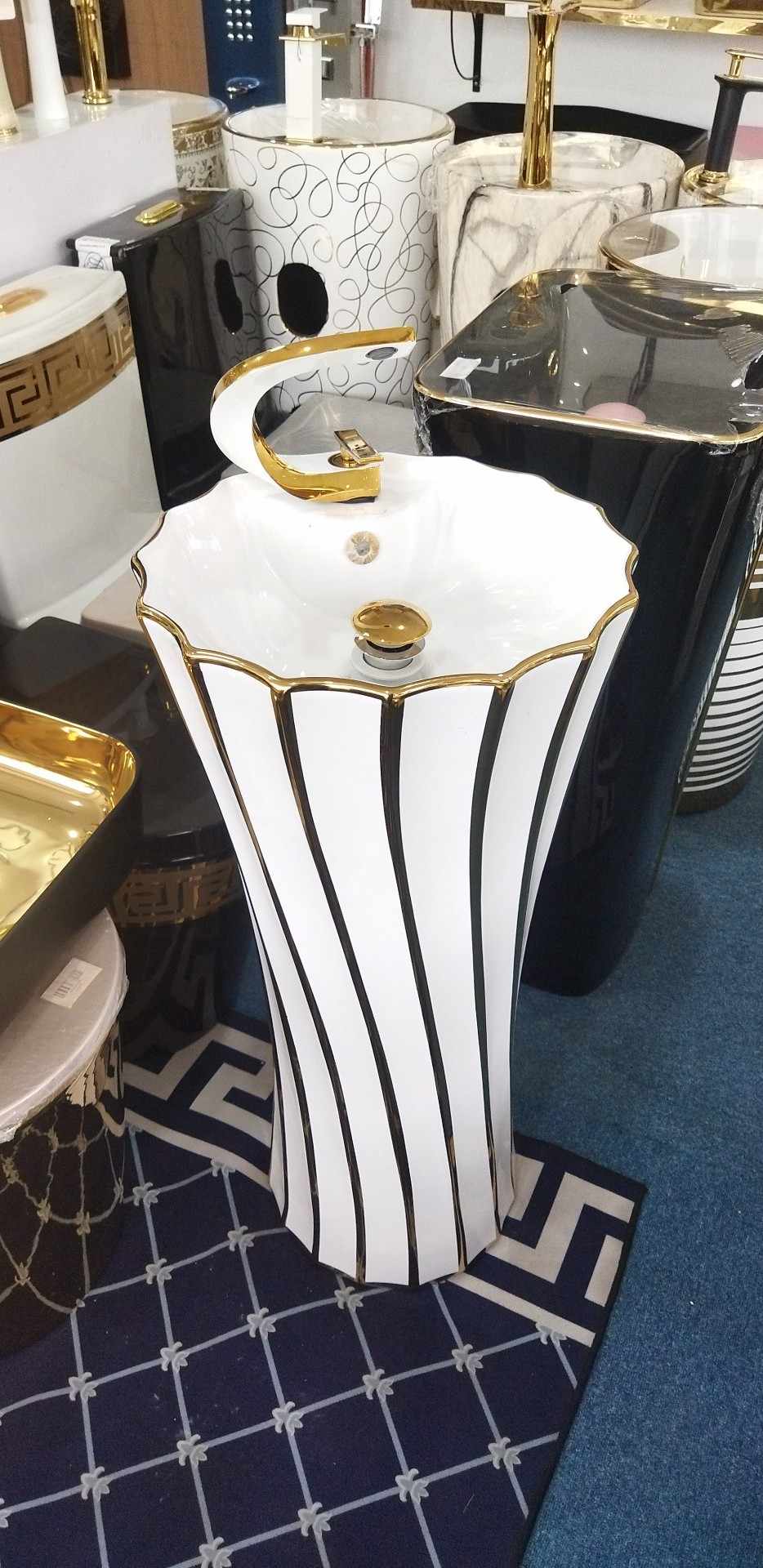 Pedestal Stand Alone White Gold Basin Sink Electroplated