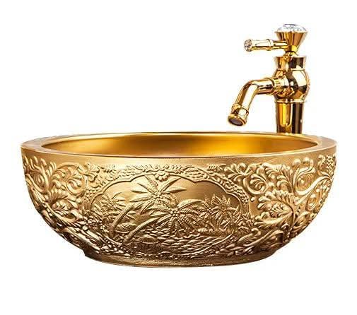 Pure Gold Hawaiian Carved Pattern Porcelain Countertop Bathroom Basin