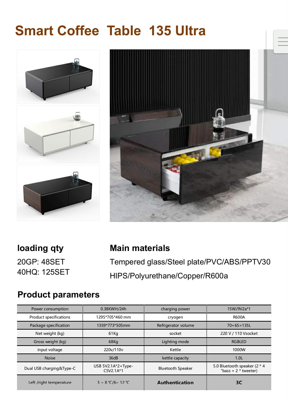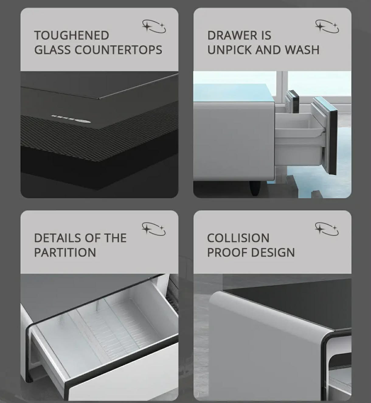 Smart Coffee Table Mini with Wireless Charging and Boiler Fridge and Freezer Function