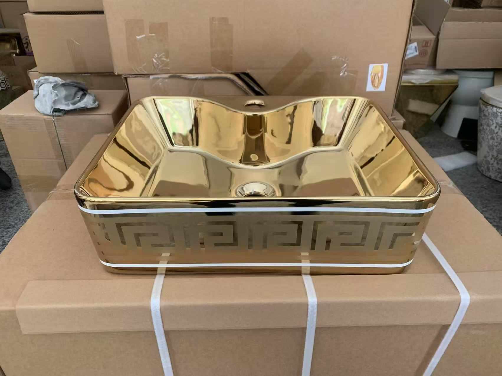 Square Pure Porcelain Gold-Plated Above-Counter Sink Versace Design – Luxury Bathroom Basin