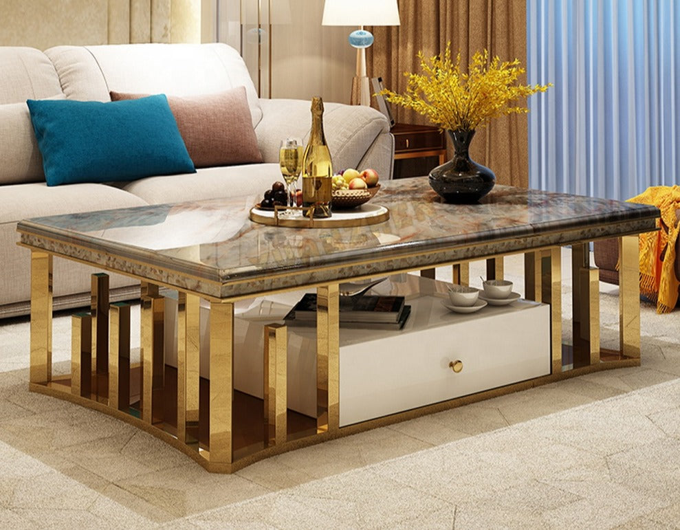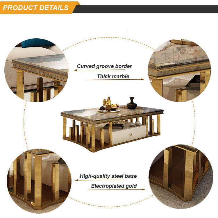 Stainless Steel Legs Luxury Coffee Table Marble Top