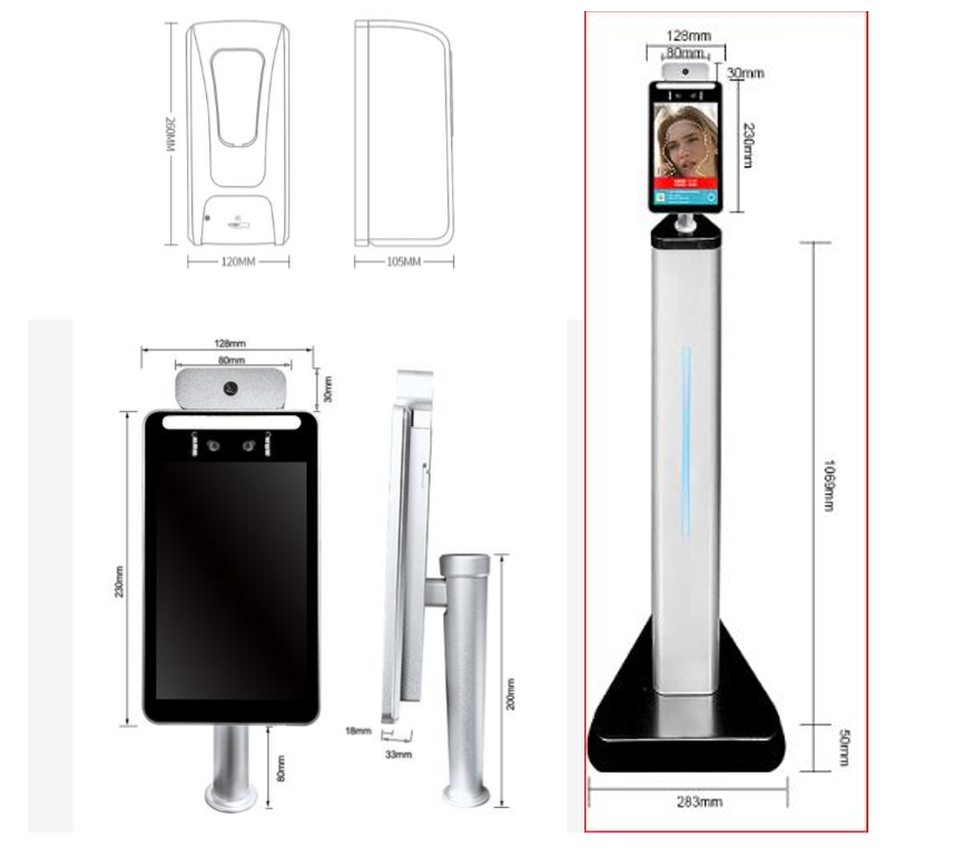 Touchless Stand Automatic Hand Sanitizer Dispenser Stand Liquid Soap Dispenser with Face Recognition Thermometer