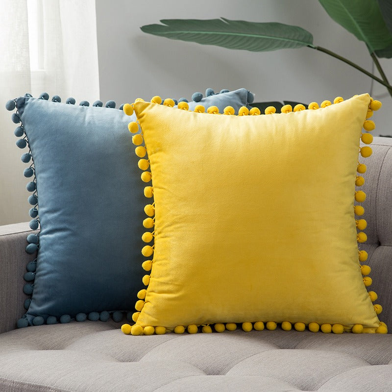 Velvet Cushion cover 18x18 pom pom pillow cover, decorative pillows,cojines decorativos