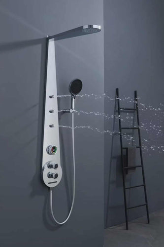 Wall Mounted Smart LED Shower Panel – Digital Display Rainfall & Waist Massage Shower System for Modern Bathrooms
