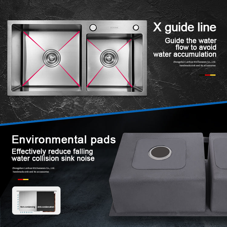 Évier de cuisine rond à double cuve Nano en acier inoxydable 304, couleur argent