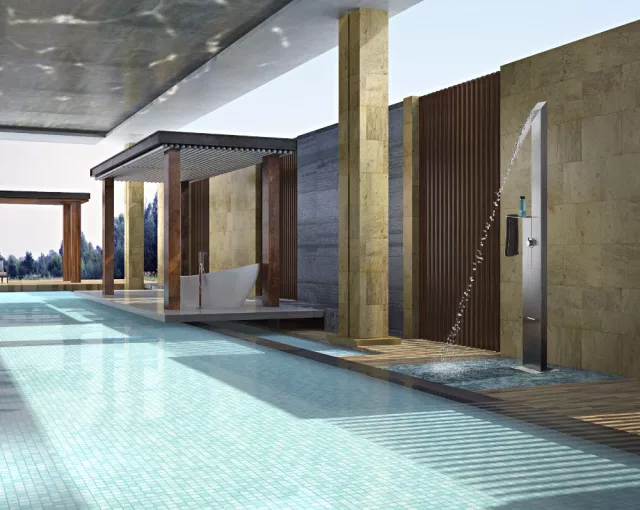 Panneau de douche extérieur en acier inoxydable 316 avec receveur