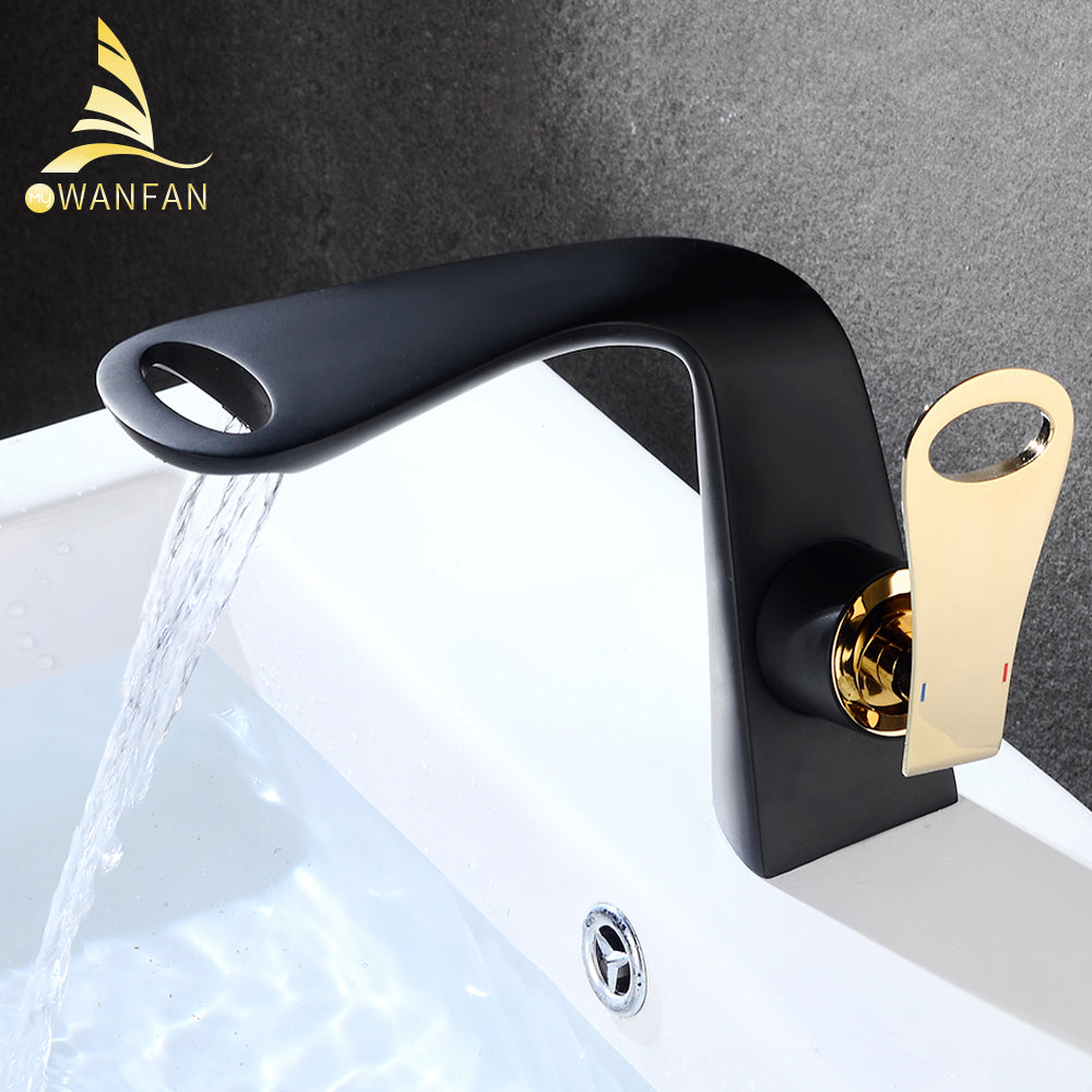 Robinet mitigeur de lavabo noir 855771, mitigeur monocommande, montage sur plage, doré, robinet en laiton pour lavabo
