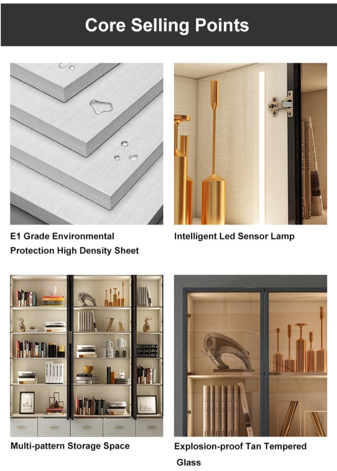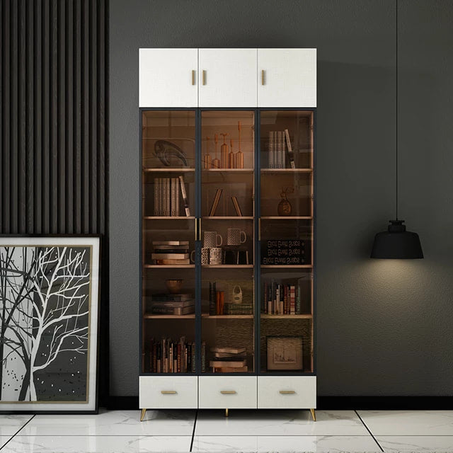 Bibliothèque avec éclairage LED intégré et porte en verre trempé de 5 mm