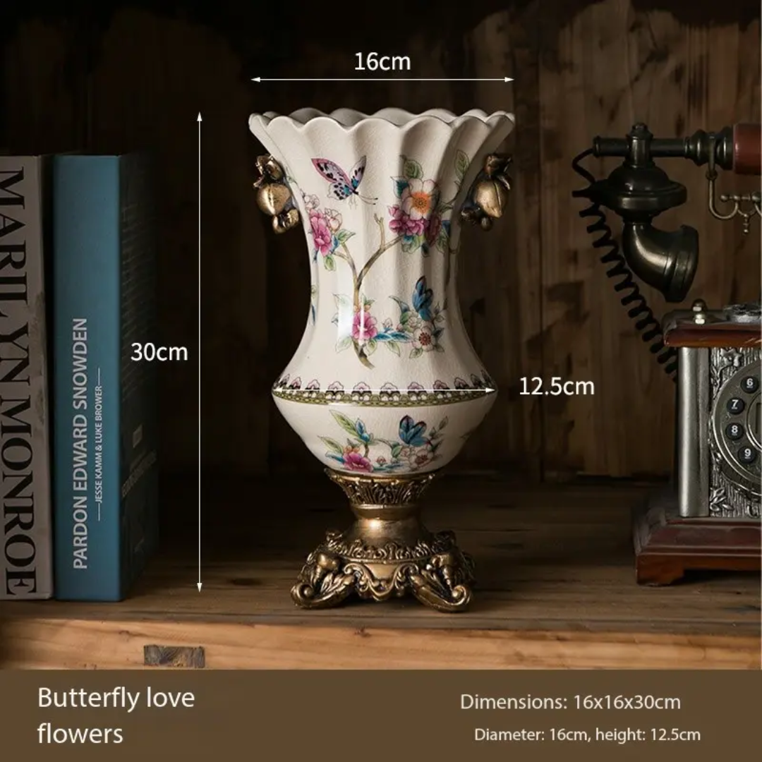 Classic European Porcelain Vase with Intricate Blue Floral Art and Ornate Base