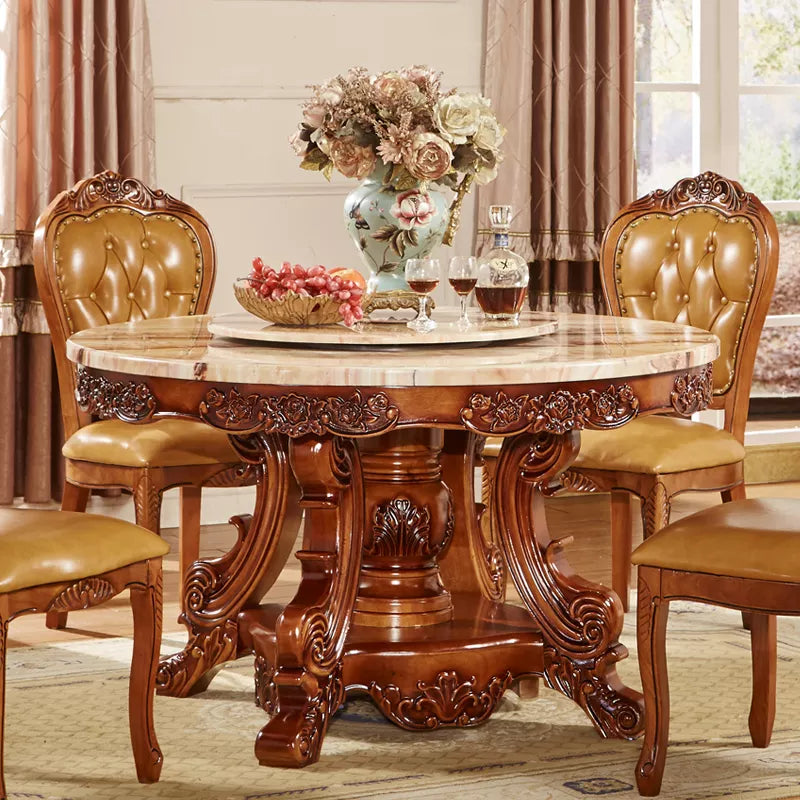 Ensemble de salle à manger avec plateau en marbre, mobilier de salle à manger de luxe, ensemble table à manger ronde royale 6 places avec chaises