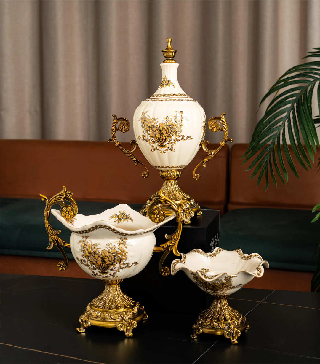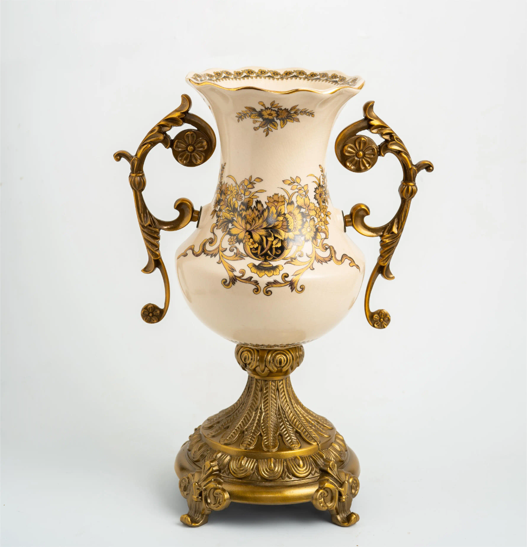 Duchess Charm Antique Style Vase Collection with Rich Gold Carvings and Cream Finish