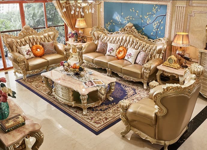 Ensemble de canapés en cuir de vachette véritable et bois massif