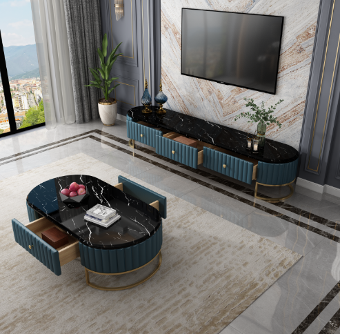 Meuble TV moderne de haute qualité pour chambre à coucher, en métal (REMARQUE : TABLE BASSE NON INCLUSE)