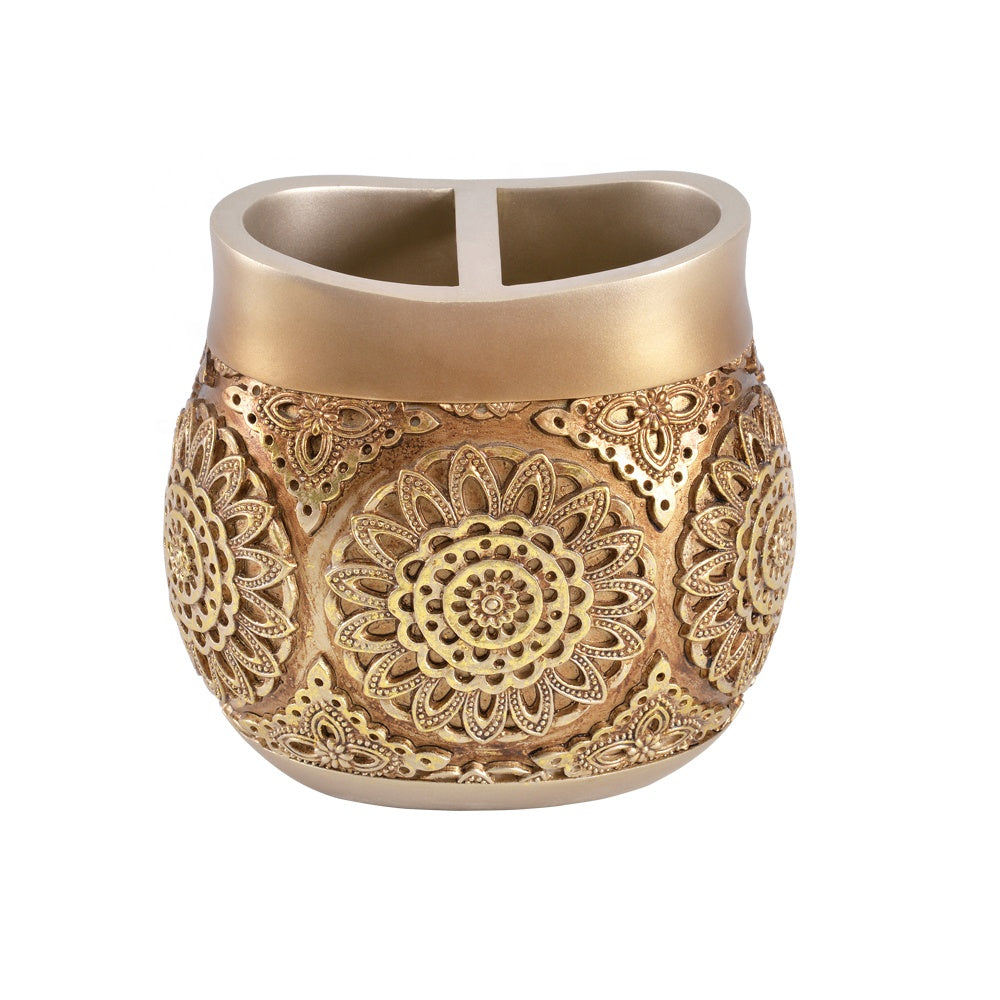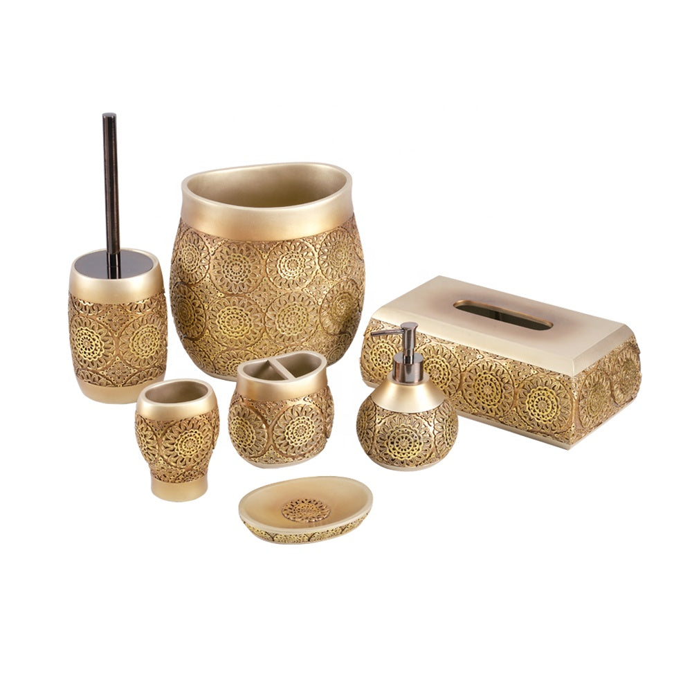 Ensemble de salle de bain de luxe 7 pièces en résine avec accessoires de salle de bain dorés