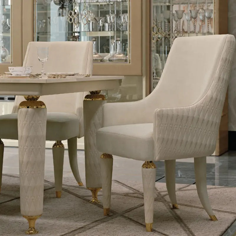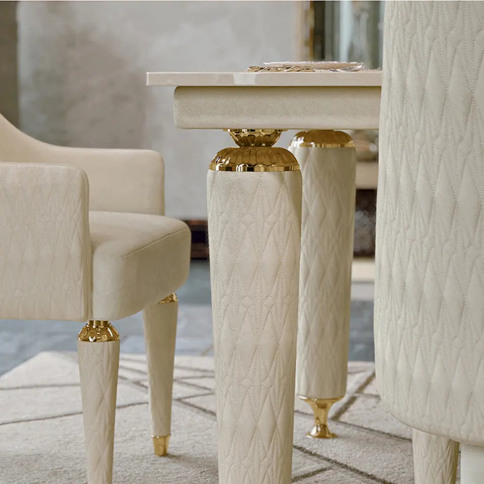 Ensemble de salle à manger de luxe en marbre et cuir, structure en bois massif, 6 ou 8 places.